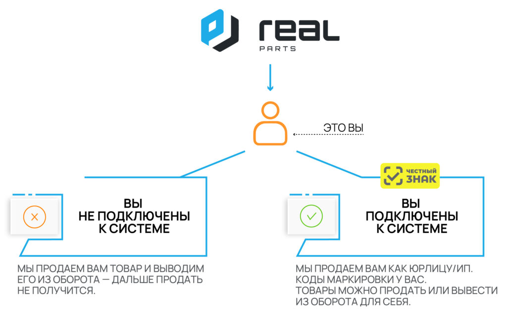 — если таксопарк не зарегистрирован в системе, юрлицо продает ему товар как конечному потребителю и само выводит товар из оборота. Дальнейшая продажа невозможна.
